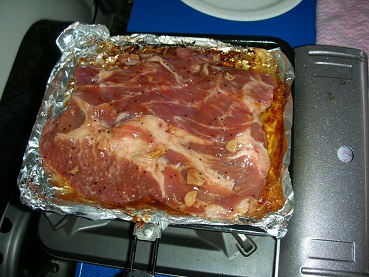 キャンプ飯 ステーキとサラダ その他料理 2017年08月16日 先日海に行った時の夕飯メニュー。 安く、美味しく、楽しく、そして簡単にがテーマのお外ご飯。 海岸でカセットコンロ一つで調理。 ご飯をあらかじめ人数分、個別にラップに包んで持って来た。 ラップを広げるだけでお皿もいらず食べれるので、洗い物が出ない、ゴミも小さくなる。 で、今回のおかずはステーキ。 でも先日釣りに行く時に立ち寄ったマックスバリューで半額になっていた物を冷凍でとっておいたもの。 肉が560gで味付き、あとは焼くだけで、387円。激安です。 カセットコンロで焼きます。 うーん、デカい。 娘たちはインスタ栄えする。とか言ってました・・・・。 で、焼き上がり。焼いてる最中からニンニクの臭いがたまらなくそそる。 更に、スーパーで買って来た98円の刻みキャベツとサラダドレッシング21円。 激安サラダの出来上がり。 みんなで食べるお外ご飯。 当然ながら激うまです。 その他のキャンプ関連記事 [0回]PR