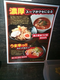 千葉のラーメンダイニング すどらぁ その他料理 2017年06月01日 富津海岸で潮干狩りの帰りに千葉の16号沿いにあるラーメン屋 ラーメンダイニング すどらぁ へ寄りました。 見た感じ最近風のきれいなラーメン屋でしたが、実は三代目で昔からあるラーメン屋のようです。 三代目が最近風に改装したようです。 メニューも昔からの味も守りつつ最近の物も取り入れてるようです。 どれも美味そうで悩みます。 娘は味噌ラーメン。 私は魚介醤油つけ麺をチョイス。 お腹ペコペコで期待が膨らみます。 味噌ラーメン つけ麺 どちらも美味いっ! 味噌はしっかりと味噌ですが濃すぎず、だしも効いて美味い。 麺もしっかりしていて美味い。 文句なしの味噌ラーメンです。 つけ麺は魚介がしっかり聞いた濃厚な醤油だれ。 でも全くしつこくなくサッパリ食べられる。 麺は結構な太麺ですっごい腰がある。 食べごたえがあってスープと良く絡んで相性がいい。 予想以上のうまさに大満足。 ちなみに今回は8名で来たのですが、全員一致でまた来たいと。 今度は別のラーメンも食べてみたいと言ってました。 今度は豚骨がこの店の売りみたいなので豚骨くいたいな。 [0回]PR