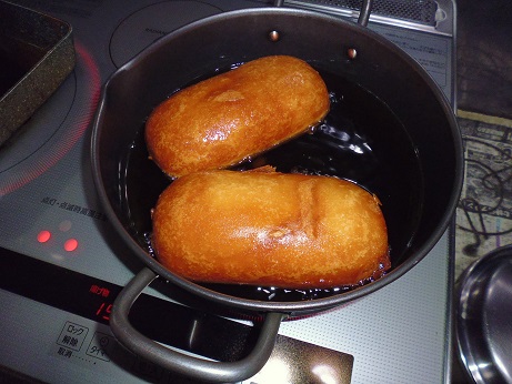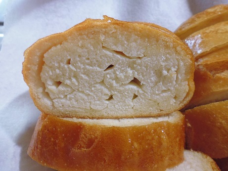 台湾のパン その他料理 2017年03月20日 台湾からいただいたパン。 冷凍してあったのを解凍。 たまにいただくので冷凍しておいて大事に食べる。 油で揚げるイメージで焼き上げる。 油を多めにフライパンに入れて焼く。 焦げ目を確認しながらひっくり返しながら焼いていく。 焼き上がり。 大きいので食べやすい大きさに切る。 このパンは日本のパンとは少し変わってる。 周りカリカリだが、中はしっとりフワフワ。 しかも中はひも状の生地が詰まって出来てる感じ。 味は何もつけなくても甘みがあって美味い。 日本のパンにはない独特の味わい。 どこかで見かけることがあったら是非食べて欲しい。 ただ、私は店頭などでは見た事がない。 その他の料理、外食 [0回]PR