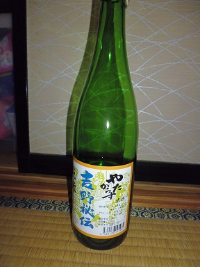 奈良の地酒 やたがらす その他料理 2017年12月11日 以前奈良へ行った時に地元のスーパーで日本酒を買って来た。 お土産物屋でも沢山日本酒を売っていたがどこも高い。 観光地&お土産価格で小さい300mlぐらいのビンで720㏐ぐらいの値段がする。 なのでスーパーに行ったところ、ちゃんと奈良の地酒コーナーがあって普通の価格で売っていた。 その中で、安くて純米酒を見つけた。 純米 吉野秘伝 やたがらす。 さてさてお味の方はどんなものか。 香りはややキツくちょっと鼻を突く。 飲んでみると、香り通りの味。 口当たりがきつめでちょっと飲みにくい。 まぁ値段相応だったか。 [0回]PR