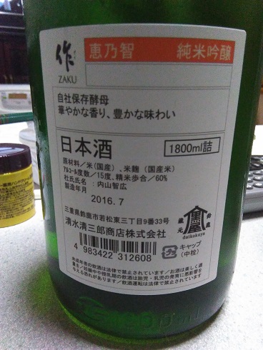 日本酒「作 ZAKU」恵乃智 純米吟醸 その他料理 2017年08月11日 先日酒屋に行った時、看板に「作」入荷と書いてあった。 気になってみると、入荷したばかりらしい。 何とも美味しそうな雰囲気でつい一升瓶で購入してしまった。 「作 ZAKU」 その名前から一部のガンダムファンにも人気があるそうな。 ザクって名前だけでガンダムとは全く関係なす。。。。 まぁそんな事はどうでもいいが、気になるお味は 冷やして飲んだのだが、トロっとして芳醇。そしてフルーティー。 これ当たりだ。 美味しいから、この時期に毎年出るなら買いたいな。 その他の料理、外食 [0回]PR