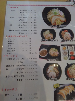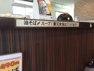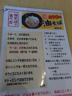 油そば 490円 沼津に出来た「ぶら屋」 その他料理 2018年07月02日 先日千本浜の帰りに国道1号線に新しいラーメン屋さんを発見。 看板にでかでかと 「油そば 490円」と書いてある。 店の名前は分からんが油そば屋なんだね。 なんにしろ、今時490円でラーメンが食えるのは安い。 早速食べてきました。 お店の名前は「ぶら屋」らしいです。 店に入ると店内はきれいで広い。 おしゃれな欧米風な作りで良い感じ。 テーブル席とカウンターがあり、カウンターはコの字型の牛丼屋みたいなタイプです。 若い夫婦でやってるのかな?とも思える店の雰囲気でしたが、出てきたのは食堂のおばちゃん?おばあちゃんみたいな感じ。 なんだか意外でした。 さてメニューを選びます。 看板メニューと思われる油そばは、WHITEとBLACK、REDそして納豆キムチと4種類。 WHITEとBLACKはそれぞれ1玉のシングルが490円です。 麺2玉だとダブルで690円、3玉のトリプルで990円。 そんなに食ったらお腹いっぱいになりそうな感じです。 個人的には辛い物が好きなのでREDに行きたかったのですが、まずはノーマルな看板メニューを食べて見たくてWHITEのシングル490円にしました。 連れは魚介つけ麺のシングル690円にしました。 油そばの食べ方が書いてありました。 まぁ途中から味を変えたりして楽しむみたいです。 しかし何故か越野亭って書いてある・・・・。 この店は、ぶら屋じゃないの? 越野亭ってお店で修業でもしてきたのかな? そんな事言ってるうちに来ましたラーメン。 そんなに待たなかったですね。 しかしカウンターに座ったのに、コの字型のカウンターなのにメニューを取る時も、ラーメン持ってくるときもカウンターの中から来ないで普通に後ろから来ますね。 突っ込みどころ満載なお店ですが、ラーメンとは関係ない話なので良しとしましょう。 まずは看板メニュー油そばWHITE。 そして 魚介つけ麺。 ラーメン持ってきたときに、油そばは完食したら呼んでください。 スープがありますので。と言われました。 そういえばこんな事が書いてあります。 〆スープ。 割り湯かな? さてまずは油そばはどうでしょうか? 麺はやや太めで黄色みの強い麺です。 よく見ると麺に黒い粒粒が見えます。 全粒粉みたいな感じでしょうか? 最初は良ーくかき混ぜて味をなじませてからいただきます。 おっ!! 意外に美味い。 意外なんて言ったら失礼なんですけど、お店の感じが不思議なのとお値段の安さからあんまり期待してなかったのでつい・・・。 脂っこいかとも思いましたが、そうでもなく味もなかなかです。 特に麺は腰もあって旨味も強く全粒粉の麺みたいな気がします。 説明通り途中からラー油を追加してみました。 おー、ラー油は相性いいですね。 更にお酢を追加。 さっぱり食べやすくなりました。 一部、一味とコショウも試してみましたが、これはあまり合いませんでした。 ニンニクは匂いが気になるので試しませんでした。 ラー油を追加して美味しく完食しました。 さて完食したので呼び出しボタンを押して、ピンポーンと鳴ります。 はいはーい。と、おばちゃんが出てきます。 手にはスープポッドを持ってます。 はい、スープね。と言って空のラーメンどんぶりにスープを注ぎます。 ちなみに、油そばって完食するとスープも何も残らないんです。 なので、割り湯ではないですね。 本当にただのスープです。 味の方は、焼き肉屋で出るような塩味のスープでした。 まぁスープは美味しかったんですけどね。 さて、魚介つけ麺の方ですが、こちらは余り美味しくなかったですね。 麺は同じ美味しい麺でしたが、つけ麺のスープがちょっとね。 味噌ベースと思われるスープに魚粉を入れて魚介風にした感じで、あまり魚介がマッチしてないような感じです。 まぁ合ってるかどうかは定かではありませんが私はそう感じました。 このお店はやっぱ油そば食べた方がいいのかな? ちなみにここのラーメンのシングルは量少なめでした。 沢山食べる方はシングルでは絶対足りないと思います。 横の方で他のお客さんが、普通のラーメンを食べてましたが、こちらは美味しそうに見えました。 今度来る機会があったら普通のラーメンも食べてみたいかな。 あと油そばのREDも食べてみたいですね。 ただし、また来るかは謎です・・・。 [0回]PR