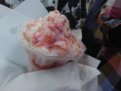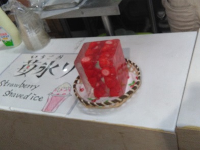 築地の苺氷り これこそ本当のかき氷の苺味 その他料理 2018年06月01日 築地に行った際に、場外売り場のぷらっと築地と言う施設内でかき氷を売ってました。 そのかき氷の見た目のインパクトに娘たちはくぎ付け。 食べてみました。 苺が丸ごと凍らせた、氷のブロックが置いてあります。 その名も「苺氷り」。 これをかき氷マシンで削ってます。 完全に最近のインスタ映えって奴ですね。 昔のようなただ削っただけの氷ではなく食感がフワフワなタイプのかき氷。 味はもう苺そのもの。 苺を丸ごと削ってるのだから当たり前ですが、苺そのものを食ってる感がすごいです。 お値段は600円とちょっと高めですが、それだけの価値があります。 娘たちは大満足。 また食べbに来たいとの事でした。 [0回]PR