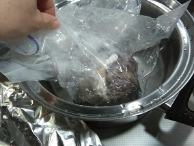 美味さ絶品 ジビエ料理 ロースト鹿 その他料理 2019年01月14日 先日折り合いにいただいた鹿ですが、ロースと脚をいただきました。 その足の部分をロースト鹿にしてみました。 いただいた鹿はガッチリ凍ってます。 まずは完全に解凍した鹿肉にフォークで全面、プスプスと刺していきます。 そしてクレージーソルトを塗り込みます。 フォークで刺した穴にクレージーソルトが染み込むようにね。 そしたらフライパンに油をひき全面を色が付く程度に焼きます。 肉を焼いたフライパンは洗わないでそのままに、後で使います。 そしたらこのお肉を一づつポリ袋に入れます。 お肉を入れたら空気を抜いてしばります。 更に袋に入ったお肉をジップロックにいれ空気を抜いて閉じます。 鍋にお湯を沸かし火を止めます。 そのお湯の中に先ほどのジップロックに入った肉を入れます。 鍋の蓋をしてそのまま30分~お好みでつけておきます。 中がレア気味で赤いのが好きな方は30分。 ちゃんと火が入っていた方がいい方は45分~1時間漬けときます。 お好みの火入り加減になったら肉を取り出します。 ここからロースト鹿のたれを作ります。 袋から肉を取り出し、ポリ袋の中の肉汁を先ほど肉を焼いたフライパンに入れます。 醤油大さじ3、みりん大さじ2、砂糖大さじ1を加え沸騰させます。 我が家ではニンニクは匂うので使いませんが、好みでニンニクを入れてください。 どちらかと言えばニンニクが入ってる方が一般的です。 あとは肉を薄く切ってたれをつけて出来上がりです。 本来はローストポークのレシピなのですがそのまま鹿で作ってみました。 さてそのジビエなロースト鹿のお味は・・・・。 おー!!これは美味いっ!! ジビエとは言え何も獣臭くない。 臭みもなく、それでいて濃厚なうまみがある。 鶏、牛、豚のどれかと言ったら見た目もそうだが、牛ですね。 ローストビーフに近い。 でももっと濃厚な独特の旨味です。 こりゃぁおいしいや。 いいものいただきました。 またください。 今日も美味しくいただきました。 【ふるさと納税】高タンパク・低カロリー・低脂肪 えぞシカ肉セット 価格:10000円(税込、送料無料) (2019/1/10時点) 楽天で購入 [0回]PR