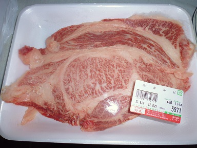 贅沢に和牛カルビステーキ その他料理 2017年08月28日 本日は我が家でちょっとした記念日なのです。 なので、いつもより贅沢な夕食です。 西伊豆に行った際に、帰り道に立ち寄ったお肉屋さん。 ちょっとした評判のお肉屋さんで安くて上等なお肉が帰るとの事で行ってきました。 家族7人で5000円ぐらいの予算でステーキが食いたい。 そんな希望を伝えた所、ちょっとオーバーしちゃうけどいい?と聞かれてお任せでお願いしました。 出てきたのが 100g480円のカルビ。 厚切りの大判で3枚。約1.2kg。 九州王とか言う和牛らしい。 もう見ただけで美味しそう。 早速焼いて食べました。 にんにくをスライスして。 翌日仕事なので匂うと嫌なので少なめにしました。 更にキャベツを千切りにして。 デカいフライパンで焼きます。 相当いい匂いが家中に充満して家族みんなよだれがダラダラです。 焼きあがったものをカットしてきます。 焼き具合はせっかくいいお肉新鮮なお肉なのでレアです。 買って来た3枚のお肉を焼いたらお皿に並べます。 7人前。 一人当たり約170g。 数字を聞くとそんなに量がなさそうですが、実際見た目は結構多い。 これ普通にステーキ屋さんで食べたらいくらになるんだろ? なんて事を思いながらいただきまーす。 うん、当然ながら美味い。ちなみに味付けは無しです。 好みで塩とコショウつけるようにしたのですが、そのままでも十分美味い。 THE和牛って感じの味がします。 塩つけたりコショウつけたりしながら食べてみて、結局うっすら塩を振るだけが一番美味かった。 もりもり食べていくうちに・・・・・・。 やっぱカルビですね。 油っこい・・・・・・。 私ももう歳なので油っこい物がそんなに食べれなくなってます。 全部食べ終わった時には少し気持ち悪くなってきました。 やはりほどほどに食べるのが良いようで一人100gぐらいがちょうど美味しく食べれるのではないかと思いました。 しょせん庶民なのであまり良い物を大量には食べれないのです。 胃が安物に対応してて・・・・・。 まぁ、予算を上げてもっと上質の高い肉にすればよいのでしょうけどね。 こんな結果に終わりましたが100g480円のお肉は十分に上質なお肉でした。 仮にスーパーと比べてみても、ここまでのお肉はなかなかおいてないし、マックスバリュで見かける100g500円ぐらいのお肉よりははるかに上です。 贅沢な夕飯でした。 ごちそう様でした。 その他の料理、外食 [0回]PR