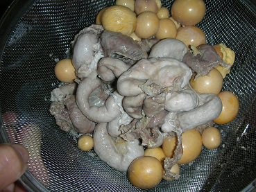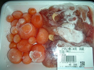 鶏モツ(鶏玉道)で鶏モツ鍋を作ってみた その他料理 2017年11月23日 以前、鶏モツ(鶏玉道)が安かったので買うだけ買って、そのうちもつ鍋にしようと冷凍して置いた。 冬瓜とユウガオがあったのでもつ鍋にした。 まずは茹でこぼします。 結構な臭い(悪臭)がします。どぶみたいな・・・。 何だか見た目は美味しそうだけど、臭い。 たまごの皮をむきます。 めんどくさい。 モツの中にはなんだか臭いドロドロが入ってるので洗います。 最後に小さく切ります。 あとは 具材をぶっこんで鍋にします。 鍋と言うより味噌汁みたい。 見た目美味しそう、あったかそう。 一味をふりかけて頂きます。 うん、いい出汁が出て美味い。 臭みも丁寧に洗ったんで全く気にならない。 ・・・・。 でも、モツが・・・・。 パサパサして美味しくない。 あれ?思ってる感じと違う。 鶏モツは鍋に合わないね。 やっぱ山梨のB級グルメの甲府鶏モツみたいにした方が美味しいね。 残念、今回の料理は失敗。 いい勉強になりました。 [0回]PR