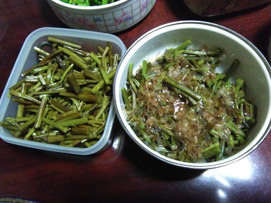 春の山菜 美味しい季節になり採ってきました その1 山菜、野菜 2018年05月01日 春も訪れこれから暑くなる季節。 新緑がまぶしく目に優しい季節になりました。 この時期は春の山菜の時期で山菜採りと山菜の処理が忙しい季節です。 その辺を散歩しているだけでいろんな山菜を目にします。 私自身山菜に目覚めたのは割と最近で、まだまだ初心者ですがやっと時期がわかってきて、採りに行ったらもう時期が過ぎてたなんて事は今年は避けたいものです。 と言う訳でちょっと前から目をつけてた山菜たちを採ってきました。 まずは、こごみ。 アクやクセがなく、歯ごたえが良く非常に美味しい。 今回はサッと一茹でして醤油と鰹節で味付けしました。 文句なく美味しいです。 これは、ワラビ。 人気の春の山菜ですね。 右がお浸し、左が煮つけ。 これぞ春の味覚っ!って感じで非常に美味しいですね。 これは毎年食べてるので、なくなると悲しいです。 そしてイタドリ。 四国の方では隣の県まで取りに行かないとないぐらい人気で、生えてもすぐに取られてしまうそうです。 この辺ではただの雑草ですね。 全く競争相手はいないので、十分取りごろになるまで待てます。 しかしあまり大きくなるとスジっぽくて食えなくなるんで、太くて柔らかいうちに取ります。 軽く痛めて醤油で味付け。 シャキシャキして歯ごたえが良いです。 イタドリ自体は癖もなく味がないので味付け次第でどうにも美味しく食えます。 みんなの嫌われ者、ヤブカラシ。 その名の通りヤブを枯らすほどの生命力と群生力。 どこにでも生えていて、切っても切っても再生してくる優秀食材です。 先端の柔らかいところだけを集めて茹でて刻むと芽株のような粘りが出てきて美味しいです。 味があり少しピリッと辛みがあって大変美味しいです。 辛みは人によってはクセであり好みが別れるかも。 我が家では人気です。 まだまだ旬の食材採ってきたので残りはまた明日にします。 山菜苗:ワラビ(蕨) 10.5cmポット仮植え苗5ポットセット [0回]