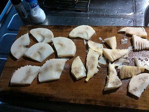 タケノコのかつ 山菜、野菜 2017年04月30日 タケノコを頂いた。 この時期になると毎年あちらこちらで生え始め、いただくことが多い。 しかし、時期をずらしていただければボチボチ食えるのだが、周りでは一斉に生え始める。 そして、獲るのが遅いとあっという間に大きくなり食えなくなる。 なので、いただき始めるとあちらこちらから貰うので、食べきれない。 毎年、そんな感じだったが、今年は違う食べ方をしてみた。 いつもは茹でて煮物にしたりする。 今回はカツにしてみた。 はっきり言って見た目は完全にカツそのもの。 言わなければわからないぐらいだ。 でも食べれば何だタケノコじゃんってな感じ。 まぁ食える。 正直言って私はタケノコはあまり好きではない。 それでもまぁまぁ食えるんだからいいほうじゃないかと思う。 家族は、まぁまぁって言ってた・・・。 その他の料理、外食 [0回]