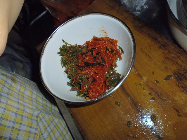 スベリヒユのキムチ 山菜、野菜 2016年08月22日 スベリヒユのキムチ 味の評価 ★★★☆☆ ヤンニョムが余ったのでスベリヒユのキムチを作ってみた。 いつものごとく下処理をしたスベリヒユを 小さく刻み よく水をきって ヤンニョムと混ぜる スベリヒユのキムチの出来上がり。 試しにすぐに食べてみたが、全くヤンニョムがなじんでない。 こりゃぁ失敗か?と思ったけど、一晩寝かせたらいい感じになって、美味い! スベリヒユはキムチも美味かった。 その他の食べ方 [0回]