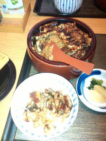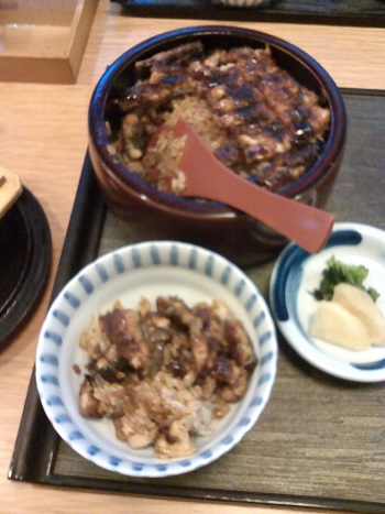 名古屋へ行って来た なまづや ひつまぶし 車中泊、キャンプ、旅行 2017年02月11日 名古屋旅行最後のイベント 昼食は名古屋なまずやで、特ひつまぶしです。 来ました。 ウナギがみっちり入ってます。 臭いも最高。 よだれが止まりません。 お店で教えてくれた通りに食べます。 まずはそのまま。 茶碗によそってて気が付いたのですが、ご飯の真ん中にもびっしりとウナギの層が・・・。 ウナギが2段入ってました。 もったいなくてご飯が倍ぐらい欲しい感じです。 そのままうな丼風に食べても最高に美味しい。 脂がたっぷりのってうまみも濃くて。たれもウナギの旨味を損なわない美味さ。 次はついてきた薬味をかけて一杯。 写真がわかりにくいけど、ネギとノリ、ワサビをかけていただきます。 もう最高!! 薬味で更に美味さアップ! 次は薬味を添えてついてきただし汁をかけてお茶漬けに。 相変わらず写真わかりにくいですが、お茶漬けです。 でも実は私はお茶漬けが苦手。 おかゆとか、びちゃびちゃしたご飯が苦手なんです。 でもせっかくなので食べてみました。 出汁がしっかりしてて美味しい。 なかなかうまいです。 さて3杯食べましたがまだ半分以上残ってます。 残りは薬味をのせて食べました。 お腹一杯ウナギを満喫しました。 その代わりお値段もかなり高めでした。 たまには贅沢な旅も・・・ムフフ。 今までの旅行記 [0回]
