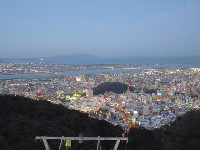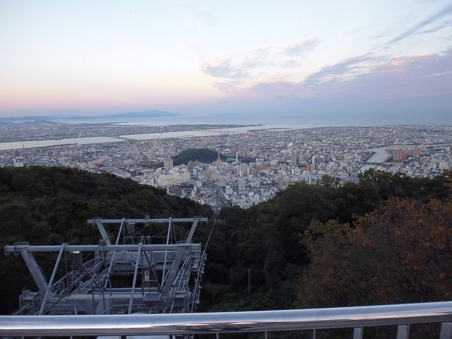 7日目 眉山 車中泊、キャンプ、旅行 2016年11月05日 お遍路さんを中断し、お土産などを買いに地元のスーパーへ買い物に行くことにした。 その前にお昼ご飯。 うどん屋を見つけたが、なぜか激込。並んでる・・・。 しかもいっぱい並んでる。 店名はチェックし忘れた。 並ぶのは嫌なので駐車場まで入ったがやめた。 しばらく走っていたら、すき屋を発見。 なんだか、連日のうどんと、今朝のうどんが大盛?だったためか、うどんに飽きてきた。 無性に牛丼が食べたくなりお昼は牛丼に決定。 間違いない美味さで大満足。 スーパーなどによりながら買い物をして夕方になったので、再び天然の湯あいあい温泉でひとっふろ。 すっきりした所で眉山に向かう。 まだ少し明るいが、ついて少しすれば暗くなり夜景が見れそうだ。 明るいうちでも結構景色はきれい。 徳島の街と淡路島方面から紀伊半島の海も一望できる。 しばらく眺めていたが、寒いっ! 風が出てきたので、日暮れまでロープーウエイ乗り場の建物の中で待つ。 だいぶ暗くなってきたが夜景本番まではもう少し。 でも、風呂上がりで湯冷めしてしまい我慢の限界っ! とりあえず、ちょっと早めの夜景を見て撤収。 寒かったー。 さて早い物でもう一週間。明日は帰る日だ。 帰りが少しでも楽になるように高速に乗って淡路島の最初のSAで就寝することにする。 その前に夕食。 四国最後の食事だ。 先日食べた徳島ラーメンがあまりにも美味かったのと、ちょうど通りがかりに大きな徳島ラーメン屋があるので、夕食は徳島ラーメンに決定。 徳島ラーメン「大孫」 期待いっぱいに入店。 先日の徳島ラーメン屋はチャーハンも美味かったので、徳島ラーメンとチャーハンを注文。 更に徳島餃子を食べてないので、奮発して餃子も注文。 このお店も生たまごが無料だ。 期待してラーメンをすする。 あら?なんか微妙。 チャーハンは?まずい・・・・。 うーん、餃子は・・・。まぁ普通かな?? 最後の最後ではずしたー! そこそこお客さん入ってるんだけどなぁ・・・・。 俺の舌がおかしいのか? 何にしろ私には美味しくなかった。 がっかりしながら四国を後に高速に乗り淡路最初の淡路島南PAで就寝。 今までの旅行記 [0回]