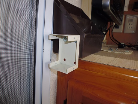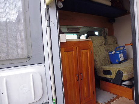 キャブコンの入り口にライトをつけた 車 2017年03月28日 キャブコンの入り口。 昼間はいいけど夜は真っ暗で足元も見えない。 いつも上がってから手探りで室内灯のスイッチを探してつける。 上がる前に足元が少しでも明るくなればなーと思ってた。 なので以前の車で使ってたLEDライトをつける事にした。 ケーヨーオリジナルのソーラーライトだったが、ライトの部分だけ流用して単3電池3本とスイッチをつけた物。 外から入ってすぐに手の届くところにスイッチをつけたい。 この辺につけたい。 ペン立てにつけてしまおう。 木ねじでペン立てに直接スイッチをつけて この部分に足元を照らすべくライトをつけるために 角材にLアングルをつけて TVのベースの角材に木ねじで付ける そこに足元を照らせる角度でライト設置。 ライトがもう一個あるので、元のオーナーがTVをつけてたであろう所に設置。 出来上がりはこんな感じ。 外から見るとこんな感じ。 夜になって試してみた。 夜の入り口はこんな感じ。 何も見えない。 ライトをつけると入り口の足元と車内が照らされて十分に明るい。 これで手探りでスイッチを探さなくても済むようになりました。 今までのキャンピングカー快適化 [0回]PR