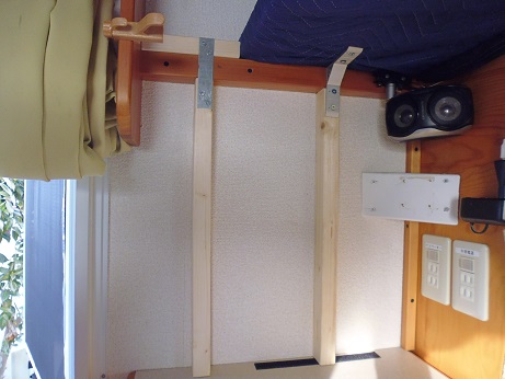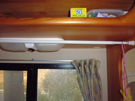 キャブコンのあちらこちらに突っ張り棒をつけた 車 2017年03月16日 キャブコンに100均で買って来た突っ張り棒をつけた。 リアの二段ベッドに突っ張り棒を使ってとカーテンをつけた。 二段ベッド(上段)足元 二段ベッド(下段)足元 リアの二段ベッドの足元にそれぞれ突っ張り棒でハンガーかけを作った。 流し段の上にタオルかけとして突っ張り棒をつけた。 100均の安い突っ張り棒つけたが、耐久性はどうなんだろ? 車内熱くなるし揺れるし。 しばらく使ってみてダメなら買い換えよう 今までのキャンピングカー快適化 [0回]