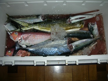 西伊豆 ボート釣り 秋の好釣り 釣り、磯物採り 2017年10月01日 西伊豆方面に船外機付きボートで釣りに行ってきました。 もう秋なので朝は肌寒いですね。 釣果は魚種多彩、クーラー満タン。 シーラ、アマダイ、ソウダ、鯖、メバル、アカヤガラ、メジ。 カンパチ、イナダが欲しかったのですが今回は釣れず。 しかし、今回のソウダで1匹デカいのが釣れて50cmぐらいの平ソウダ。 通常見かける40cmサイズと比べて体高も厚みも引きも桁違いで、釣った瞬間メジか、本ガツオかと思いました。 よく見ると平ソウダ。 あまりにもデカいのでなんか気持ちが悪い気がするほど。 後で知ってる方に聞いたらこの時期たまに出るサイズでめちゃくちゃ美味いとの事。 楽しみです。 夜帰宅してから、小さいソウダだけでもさばいておこうと思いソウダだけ処理をしました。 とりあえず3枚におろして、ハラモだけ分けた。 少しクーラーにも余裕が出来て本日はここまでで、残りの処理は明日以降と思っていた時にLINEが入りました。 友人が神津島の沖磯に釣りに行き、カンパチ、ワカシ、メジナが釣れたので持ってくるとの事。 現在我が家は魚がいっぱい、処理も間に合わず、釣り疲れで体力もなく・・・・。 一瞬唖然としましたが、それでも鮮魚が頂けるのはありがたい事で、お腹一杯お刺身が食えるので喜んでいただきました。 写真ではわかりにくいですが、まだ魚が残ってるクーラーに更に追加。 氷でよく見えませんが以前クーラーは満タンです。 明日以降、鮮魚三昧です。 その他の釣果 [0回]PR