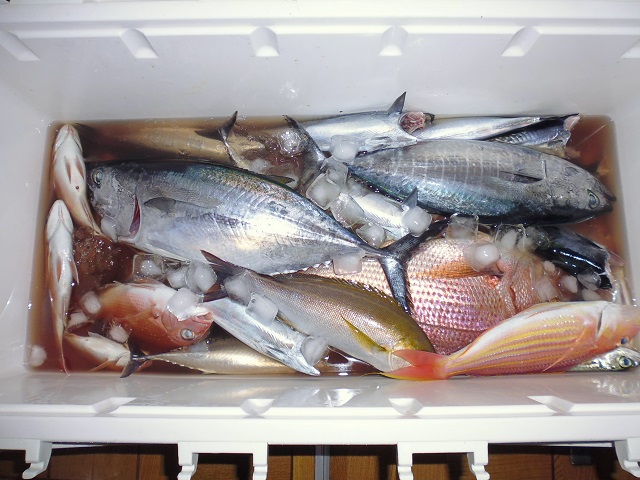 西伊豆ボート釣り 釣り、磯物採り 2016年09月18日 西伊豆に船外機付きのレンタルボートで釣りに行ってきました。 今回は人生初のメジマグロをゲット。 しかも2匹。 40cmぐらいの真鯛とイトヨリ、イサキ2匹。 ロウソクサイズの丸ソウダ19匹。 小鯖、小鯵、小鯛、小黄鯛などを少々。 エソ3匹。 なかなか満足な釣りでした。 その他の釣果 [0回]PR