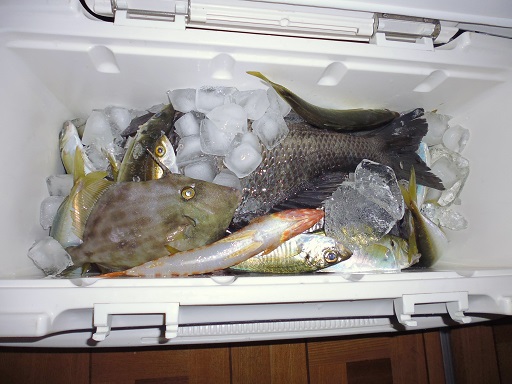 西伊豆方面 ボート釣り 魚を大量にいただいた 釣り、磯物採り 2016年11月26日 西伊豆方面にボート釣りに行った先輩に大量に魚をいただいた。 私は釣りに行った訳ではないのに、なぜかクーラー満タン。 ありがたや。 こんなサイズの黒鯛が全部で4匹。 ちいさい真鯛1、カワハギ1 こんな鯵が十数匹。 本日はもう遅いので明日以降にさばこう。 その他の釣果 [0回]PR