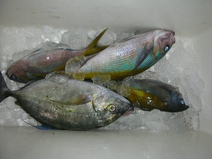 魚を頂いた(ウメイロ、ナンヨウカイワリ) 釣り、磯物採り 2018年01月21日 親戚に魚を頂いた。 シマアジ狙いで神子元まで行ったが不発だったとの事。 外道で釣れた魚を置いてってくれた。 ウメイロ4匹とナンヨウカイワリ1匹。 こんなのしか釣れなくてって言って置いてったけど、どう見てもご馳走です。 どうやって食べようかなー。 ちょうどハツを使ってスモークを作ろうと思ってたんで、スモークにでもしてみようか? でもまずは刺身で食べないとね。 ちなみにこの外道たちはサビキで釣ったものだそうです。 シマアジを釣るための生餌を確保する為にサビキでムロアジを狙うそうです。 その時に釣れた魚らしいです。 最近は我が家がなんでも食べるので持って帰ってきてくれるのですが、以前はいらないので釣れたらそのまま海にポイって捨ててたらしいです。 なんてもったいない。 なんでも食べるから持ってきてーとお願いして今では必ずなんか持ってきてくれます。 ありがたい限りです。 [0回]