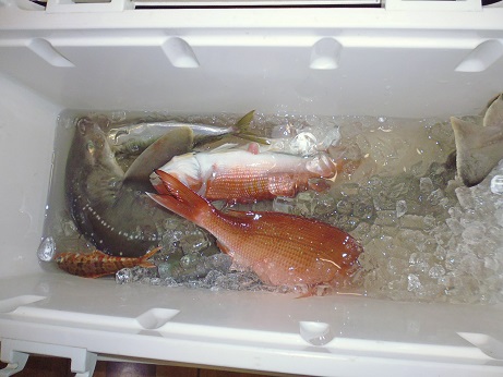 西伊豆 ボート釣り 釣果速報 釣り、磯物採り 2017年05月23日 西伊豆に船外機付きボートで釣りに行って来た。 なかなか渋く、釣果いまいち。 朝4:30出船で早朝小さな真鯛。 その後あたりもなくなり、甘鯛を狙いに。 甘鯛2匹、ヒメコダイやらトラギスやら。 なみ、風が強くなり、湾内へ退避。 その後イワシを釣って餌にして泳がせ釣り。 80cmぐらいのサメが釣れた。 これ食えるのか?? その後あたりはあるが釣れず撤収。 なかなか大量釣りとはいかない。 そろそろ青物の声も聴きたいのだが、今年は全体的に遅い気がする。 その他の釣果 [0回]