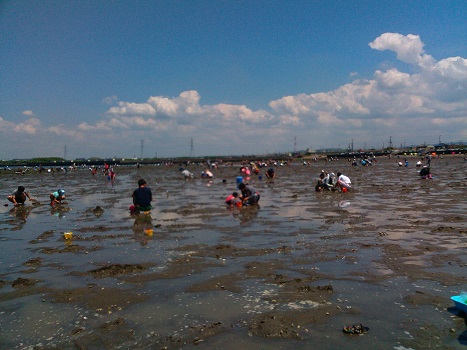 富津海岸で潮干狩り 釣り、磯物採り 2017年05月31日 会社の皆様と千葉の富津海岸へ潮干狩りに行ってきました。 毎年千葉の金田海岸へ行ってたのですが、昨年から富津海岸へ。 その理由は、富津はハマグリが多いとのうわさから。 しかし、昨年はハマグリは取れず・・・・。 しかしあさりは大漁。しかも粒が大きく身も美味しかった。 でも、去年大量にハマグリを持っている方を見かけて、いるにはいるんだなと思い、今年こそはとリベンジにまた富津海岸へ行きました。 富津はアクアラインを出てからしばらく走ります。 金田海岸は下りてすぐなのですが、富津のが遠い。 でも、混雑もなくスムーズに行けました。 大人1800円で2kgまで、子供900円で1kgまで。 それ以上取った場合は1kg900円で買い取りです。 結構混んでます。 しかし毎回思うのですが、千葉は干潟がすごい。 伊豆の方ではなかなか磯は多いが干潟はあまりないのでこういう潮干狩りする場所ないし、穴ジャコとかも取れないし、マテがいなんかも取れた事ないです。 娘と二人で掘り始めます。 あさりは物凄いいます。 1kg、2kgなんてあっという間です。 しかしハマグリが欲しい。 移動しながら掘ってると、いましたハマグリ。 しかも立て続けに5個ぐらい。 その周りを掘り進めてくと、出るわ出るわハマグリ。 2kgぐらい取りました。 なのであさりは捨てて、あまりハマグリも取れなくなったのでまたハマグリがいる所を転々と探しながら場所移動。 少し掘ってもハマグリいなければすぐ移動。 いる場所には少し掘ればすぐにハマグリが見つかります。 一度見つかるとその周りは結構います。 なんだかんだで 沢山取りました。 せっかくなのであさりも大粒だけを厳選して20個ぐらい持ってきました。 さて、引き上げて重さを測ると、二人で7.2kg。 ほとんどハマグリ。 追加料金は3700円でした。 普通にスーパーで買うよりよっぽど安いので全部買ってきました。 もし、追加料金を減らしたければその場で量を減らすこともできます。 娘と二人でホクホク。 これで念願のハマグリの酒蒸しが出来る。 あさりのようにハマグリを食べてみたいと言う長年の夢がかないそうです。 いやぁー楽しかった。 その他の釣果 [0回]