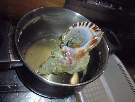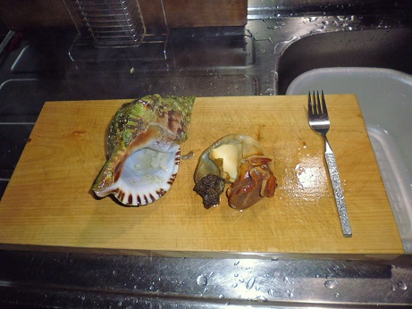あかにし貝の塩ゆで 魚貝 2017年02月24日 あかにし貝の塩ゆで 味の評価 ★★★☆☆ 先日イカ釣りに行った時にナマコでもいないかと海岸沿いを探していたら ナマコはいなかったが、なんだかツノが出ている生物を発見。 網ですくってみたら、あかにし貝だった。 大きさもかなりの物で十分食べれそうなので持って来た。 ひとつだけだったが、とあえず塩ゆで。 ゆであがり 身を取り出して 食べやすい大きさに切る。 あかにし貝はくせがなく美味い。 美味しく頂きました。 が、ワタを食べてる時に・・・・。 「がりっ!!」 うわー、じゃりじゃりする。 サザエみたいに砂袋があって取り除かなかったら、とても食べれない・・・・。 気分はげんなり。とほほ・・・・。 その他の食べ方 [0回]PR