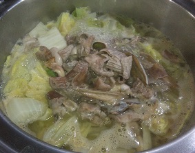 いままで取りためた魚の内臓を使って魚のモツ鍋 魚貝 2018年12月02日 ちょくちょく釣りに行き、ちょくちょく魚をもらい年中魚をさばいてる我が家ですが、その際にアラが出ます。 内臓も処理して捨てるのですが、心臓、魚卵、白子、胃袋はきれいに洗って冷凍して取りためています。 その内臓たちが結構溜まったので鍋にしました。 まず下処理で一度湯通しします。 ぐつぐつ煮ると汁が黄色と言うか少し緑かかったような嫌な色になり、大量に悪が出てきます。 そしたら火を止めて一度内臓をとりだし 今度は食べやすい大きさに切っていきます。 まぁよくあるもつ鍋のモツの大きさですね。 あとは普通に白菜や大根、人参などの野菜を入れて、普通の味噌鍋を作ります。 それに先ほどのお魚ホルモンを入れて煮込みます。 そしてお魚ホルモンのもつ鍋の完成です。 味は普通の味噌鍋です。 モツは心臓は歯ごたえがあって美味しいです。 肝はよく言えばフォアグラのようです。 胃袋は普通のモツのように歯ごたえがあって中々美味しいです。 ただ、当たり外れがあり、たまに美味しくない肝があったりします。 大量に取りためた内臓なので何の魚の肝かはわかりませんが、美味しくない魚がいるようです。 まぁ魚の内臓って食べれなそうですが、確かに生で食べるのは良くなさそうですが、火を通すとかなり美味しいです。 特に味噌鍋は臭みもなく普通のもつ鍋と比べても遜色ない美味しさです。 今日も美味しくいただきました。 [0回]PR