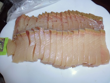 ぶりを頂いた 魚貝 2017年04月29日 ぶりを頂いた。 ブリと言っても魚をまるまるもらったわけではない。 我が家では珍しくスーパーで買った刺身の柵のぶり(養殖)を頂いた。 ブリ系の魚は我が家では、ワカシ、イナダ、ワラサを青物シーズン中は釣る事が多く、割と食べる事の多い魚だ。 なので、買う事はまずない。 しかも養殖物を食べる事もない。 ぶりは養殖のが美味いとも聞いたことがあるような、ないような。 折角頂いたのですぐに食べた。 写真じゃわかりにくいけど、なんとなく色が悪い。 ブリ系の魚は血合いは赤く身は透き通ってイメージ。 鮮度か養殖のせいか血合いもそんなに赤くなく、身も茶色っぽい。 食べてみると、脂がのって美味い。 が・・・・。 生臭い。 鼻につく生臭さ。 と言うか、スーパーの刺身のにおい。 やっぱスーパーのはダメだ。 鮮度のせいなのかなぁ? 家族皆、同意見。 魚に関してはやたら舌が肥えてて困る・・・・。 やはり自分では刺身を買う事はないだろう、今後も・・・。 その他の料理、外食 [0回]PR