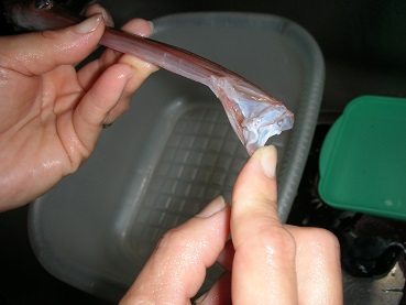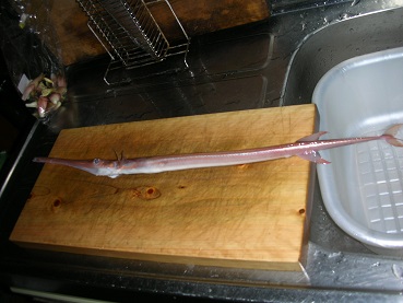 アカヤガラの味噌汁 魚貝 2017年10月04日 アカヤガラの味噌汁 味の評価 ★★★☆☆ 今回初めて釣ったのがアカヤガラ。 全く当たりもなく釣れたのも気が付かなかった。 仕掛けを回収したらついてた・・・。 そんな子ですがアカヤガラは高級魚だそうで、大きければお刺身が絶品だとか。 今回は小さく身もそんなになさそうなので味噌汁にしてみました。 長い口に可愛らしいお顔。 お口は小さい。 でも下側が開いて割と太くなる。 更に口の入り口?は大きく開く。 面白い。 ぶつ切りにして味噌汁にしました。 鍋の中はみんなで食べた後に撮ったので具がない・・・。 いい出汁がでました。 お上品な味わい、身も白身で骨からホロっと取れて食べやすい。 味はお上品。高級魚なんだろうなーと言う味ですね。 大きいの釣ってお刺身も食べてみたいですね。 その他の食べ方 [0回]PR