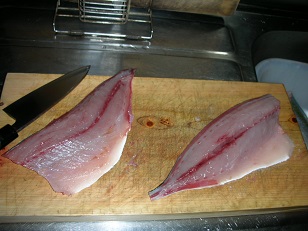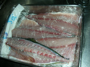 イナダの塩締め 魚貝 2017年12月21日 いただいたイナダ。まだ2匹います。 この二匹は塩締めにします。 塩締めにすると余計な水分がでてそのままお刺身にしても美味いし、そのまま焼いて塩焼きにしても美味い。 私が尊敬するサイト、ハンマープライスでは塩締めにしたお刺身を生ハム風と言ってました。 なるほど、生ハムだなぁと感じました。 塩締めと言っても作り方はいたって簡単。 まずイナダを三枚におろします こちらはお刺身(生ハム)用に骨も処理しました。 こちらはそのまま焼いて塩焼きにする予定なので骨付きで2枚におろしました。 入れ物を用意し、したにうっすら塩を振ります。 その上に魚を置いて、上からもうっすら塩をかけます。入れ物の下の方にクッキングペーパーを丸めて置いて、ラップを魚に密着させてかけます。 そのまま冷蔵庫に入れてクッキングペーパー側が低くなるように入れ物の下に何かを入れて斜めにします。 あとは一晩寝かす。 ちなみに塩の分量は好みで。うちはあんまりしょっぱいのが好きではないのでうっすらですが、物足りなそうな方は少し多めでもいいかもしれません。 でもかけすぎはダメですよ。体にもよくないし。 それと、かける塩は何でも構いません。 しかし、ちょっといい塩を使うとぐっと美味しくなります。 さて一晩寝かせて、今回も美味しく出来るかなー。 その他の食べ方はこちら [0回]PR