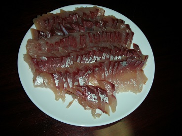 イナダの塩締めお刺身(生ハム風) 魚貝 2017年12月22日 昨日塩締めにしたイナダ。 そのままお刺身にして生ハム風で食べました。 うーん、見た目は普通のお刺身と変わらないですね。 でも、身を切っててもわかるほど、もっちりしてます。 なので、切りにくいっ! 塩味がついてるので醤油も何もつけずに、そのままいただきます。 ほのかな塩味と生臭さは全くなく、普通のお刺身と違ってもっちりと粘りのある食感で下に旨みが絡みつきます。 いやぁ、漬けも美味しかったけど、塩締めも本当に美味しい。 本日もごちそうさまでした。 その他の食べ方はこちら [0回]PR