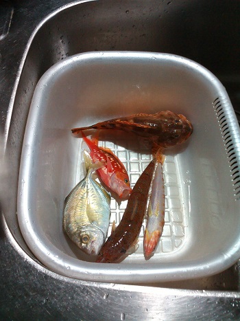カサゴ、サクラダイ、カイワリの干物 魚貝 2016年12月16日 カサゴ、サクラダイ、カイワリ、エソ×2 カサゴ、サクラダイ、カイワリは開いて干物に。 塩水に一晩つけて明日の朝干します。 エソは3枚におろし、かまぼこの材料に。 これだけでは足りないので冷凍して取りためて、量がそろったらかまぼこにします。 その他の食べ方 [0回]PR