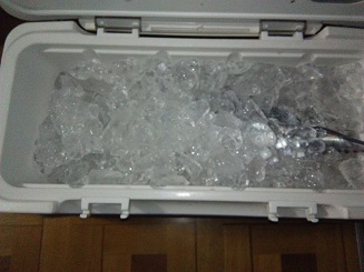 クーラーにカツオ2本と氷を大量にいただいてきましたが・・・・写真にカツオが写ってません。
