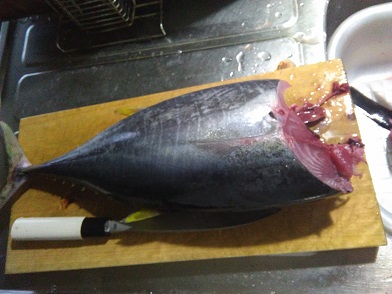 キハダマグロの刺身 やっぱ釣りたて最高 魚貝 2018年08月25日 頂いたキハダマグロですが、マグロは血の魚なのですぐに食べないとすぐに鮮度が落ちて味がすっごい落ちてしまいます。 足の速いサバやソウダなどはすぐに傷んで食べれなく特に生食は出来なくなってしまうのですが、マグロはちゃんと冷やしておけばそれなりに日持ちしてお刺身で食べる事は出来ます。 しかし、味は別で、どんどん落ちてきます。 更に言えば一度冷凍してしまうとそれだけでもかなり味が落ちます。 なので、釣ったらお刺身はなるべく早くのが良いです。 ただでさえ、我が家はマグロはあまり好きではないので味が落ちる前に食べたいものです。 まぁマグロが好きではないと言いましたが、それは買ったマグロの事で釣ったマグロは別です。 冷凍せず、釣りたて新鮮なマグロはやはり絶品です。 一般的にキハダはマグロの中ではあまり美味しくない方ですが、釣りたてははっきり言って美味いです。 売っている本マグロなんかよりよっぽど美味しいです。 今回頂いたキハダマグロは大体3kgぐらいなのでサイズは小さいですがお味はどうでしょうね。 頭を落としてさばきます。 詳しいさばき方は過去記事見てください。 マグロが届いた(23kg) 我が家にマグロが届いて、解体ショー我が家にマグロが届いて、解体ショー 続き マグロさばきながら、お刺身マグロの刺身 さくさくさばいて出来ましたお刺身。 うん、やっぱり美味しいですね。 釣りたてのマグロは美味しいです。 スーパーのマグロとは全く別の魚のようです。 本日も美味しくいただきました。 [0回]PR