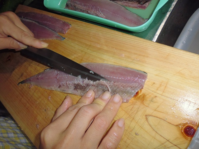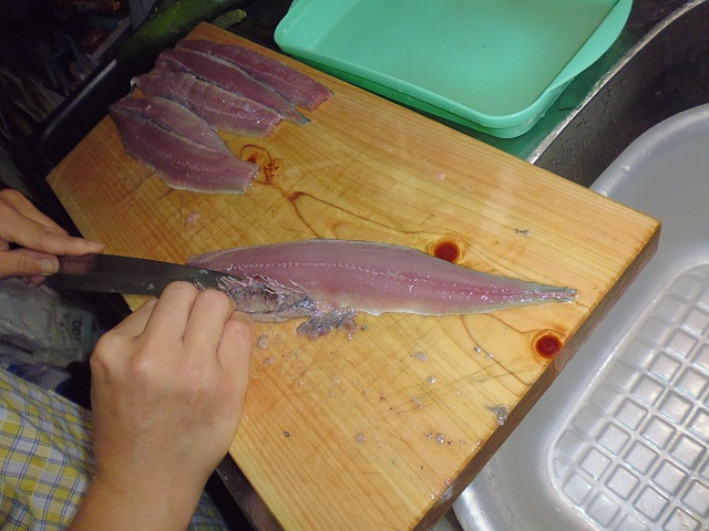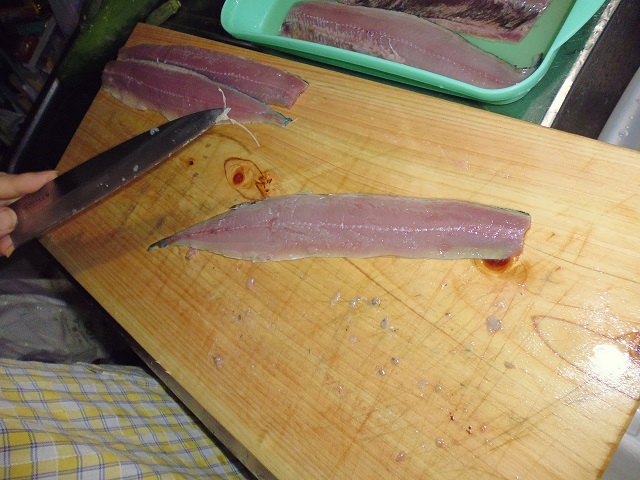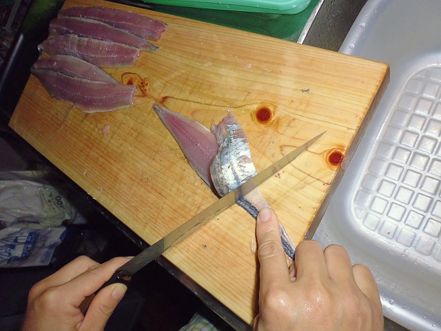 サンマの刺身 魚貝 2016年08月30日 サンマの刺身 味の評価 ★★★★★ サンマの時期が来たっ!! 我が家はサンマが大好き。 刺身では新鮮な金目とサンマは極上に美味いと思う。 ちなみに、サンマをさばく前の写真を撮り忘れたので頭だけ。 三島の村の駅で毎年秋口から生サンマを売り出す。 サンマは足が速く生で食べれるサンマはなかなか手に入らない。 スーパーなどで見かけるが怖くて生では食えない。 村の駅のサンマは毎年食べてるが鮮度もよく最高です。 今年はまだ値段が高く沢山は買えないが、どうしてもサンマの刺身が喰いたく三島まで足を運んだ。 高いので3匹だけ買って来た。 3枚におろし 小骨をとり 皮を引く 食べやすいサイズにして 湯がいたミョウガを添えて ご飯に生姜と土佐醤油をかけて 最高っ!! その他の食べ方 [0回]PR