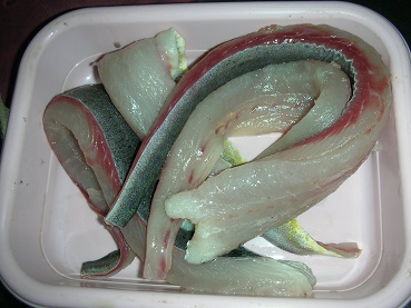 シーラの蒲焼 魚貝 2017年10月08日 シーラの蒲焼 味の評価 ★★★☆☆ シーラが釣れたが他にもいろいろな魚がある中でどうやって食べようかと悩みましたが、蒲焼にしてみる事にしました。 シーラは細かいうろこがあるので丁寧にとります。 なんでも皮だかうろこに毒があるとか。 お刺身の際は注意。火を通せば大丈夫です。 3枚におろし 中骨を取り除き5枚にします。 あとはいつものように蒲焼にして出来上がり。 見た目はなんの蒲焼かわかりません。 食べてみると当たり障りのない蒲焼です。 味の濃さとかはないけど普通に蒲焼で美味しいです。 言われなければシーラだとはわかりません。 知らないうちにどこかでシーラ食べててもおかしくないです。 さて残りを冷蔵庫に入れてたのですが、翌朝になると・・・。 ん? 煮凝りが出来てる。 しかも意外に美味い。 シーラ恐るべし。 いろんな事に使えそう。 しかもくせがないから味付け、料理の仕方次第でどうにも美味しく食えそう。 さて次回シーラが釣れたらどうやって食べてみようかな♪ その他の食べ方 [0回]PR