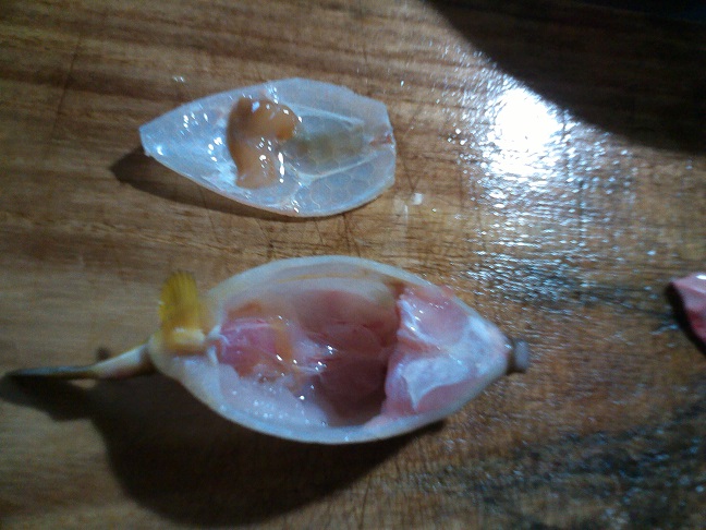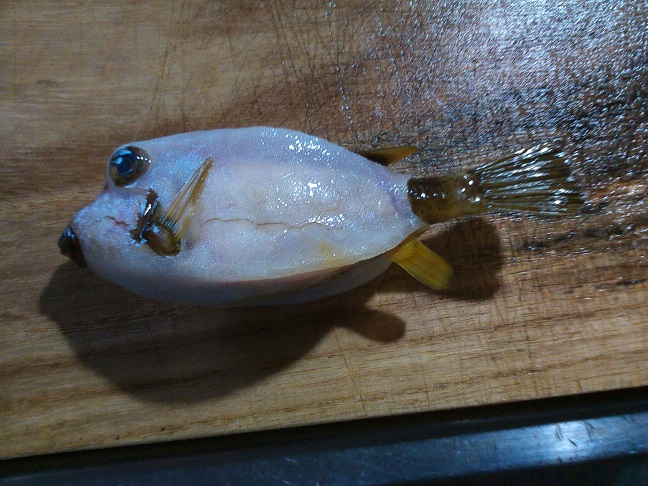 ハコフグの味噌焼き 魚貝 2016年07月22日 ハコフグの味噌焼き 味の評価 ★★★★☆ ハコフグは美味い。 写真のハコフグは採って来た時の写真を撮り忘れて、たわしでゴシゴシ洗った後の個体です。 そう、たわしで擦ると色が取れてこんな美白になってしまうんです。 さて、ハコフグを食べる前に大事な事が一つ。 食べる事に関しては自己責任でと言う事です。 ハコフグも肝に毒がある前例があるそうです。 まぁ、もっとも南の方の話らしいのですが、伊豆近辺の物でも絶対大丈夫とは言い切れません。 私の場合はいつも食べてますし、中毒になった事もないし気にしませんがネットで調べれば食べてはいけないと出てきます。 さて話を戻しましてハコフグはひっくり返して肛門からはさみを入れチョキチョキと写真のように切ります。 肝を取り出してネギと味噌と一緒に包丁でたたいて、またフグの腹の中に返して、切り取った腹で蓋をして、あとはオーブンで焼くだけ。 出来上がりの写真は撮り忘れちゃいました。 肝は濃厚で美味しいし、身も少しあるのですが、さすがフグ。美味しいです。 その他の食べ方 [0回]PR