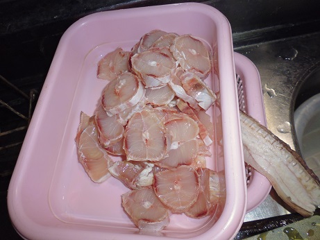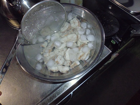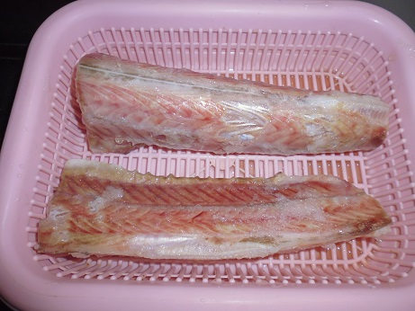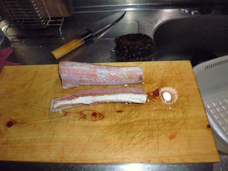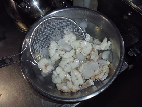 ホシザメの湯通し 魚貝 2017年05月27日 ホシザメの湯通し 味の評価 ★★★☆☆ 左側のしっぽの方は湯通しにした。 まず軽く茹でて たわしで皮をこする。 ざらざらのサメ肌が取れてきれいなツルツルお肌。 塩をまぶして 水分を抜く。しばらく放置。 食べやすい大きさに切って 塩水で茹でる 1分ぐらい茹でたら、氷水で冷やす。 盛り付けて出来上がり。 もはや見た目は言わなければサメとはわかりません。 お味の方は。 あら?意外に美味い。 刺身よりよっぽど美味いよ。 塩水で茹でたので塩味で美味しいのだが、好みでポン酢でもさっぱりいただける。 ん?箸が止まらない、ご飯が進む。 サメは火を通した方が美味いね。 その他の食べ方 [0回]PR