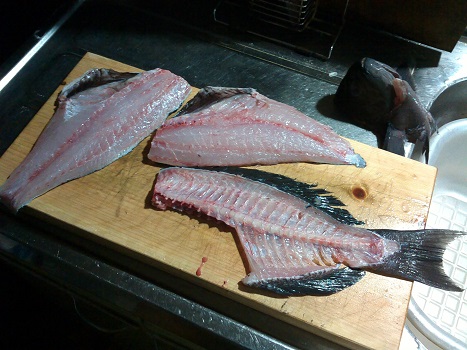メジナの刺身 魚貝 2016年12月17日 メジナの刺身 味の評価 ★★★★☆ 知り合いにメジナをいただいた。 結構デカかったので刺身にする事に。 今冬一匹目のメジナ。 毎年この時期になるとメジナが美味しい季節になり、メジナが恋しくなる。 三枚におろして 完成。 うーん、やっぱ美味い。 メジナってこんなに美味かったっけ?とも思えるが、久々だからかな? メジナは微妙にくせがあり、青臭いと言うか磯臭いというか・・・・。 我が家はこのくせが大好き。 いやー、メジナの美味しい季節が来たなー。 その他の食べ方 [0回]PR