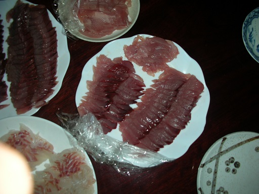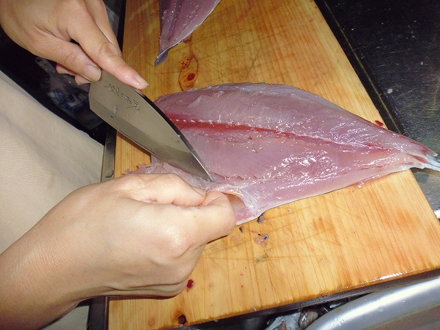 メジマグロの刺身 魚貝 2016年09月20日 メジマグロの刺身 味の評価 ★★★☆☆ 初のメジマグロなので楽しみ。 まずは3枚におろしてからお刺身に 1匹は血抜きをしてあり、もう1匹は釣ってそのまま冷やした物。 血抜きした大きい方のメジ、右上に小さく写ってるのがはらも。 はらも 血抜きをしてないメジ 見た目はほとんど変わらないがお味の方は・・・。 どちらも美味しい! でも、明らかに味が違う。 血抜きをした物はさっぱりしていて身がプリプリ。歯ごたえがある。 血抜きをしていない物は歯ごたえはなく、その代わり身全体に旨みがありねっとりした舌触り。 好みは別れるかもしれないが、私は甲乙つけがたくどちらも美味しい。 しかし、翌朝、残りの刺身を食べてみると・・・・・。 血抜きしてない方のお刺身が血生臭い。 なんか急に古い刺身を食べてるみたい。 血抜きした方は変わらず美味い。 すぐに食べてしまえばいいのかもしれないが、次回からは全部血抜きする事にしました。 その他の食べ方 [0回]PR