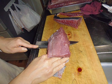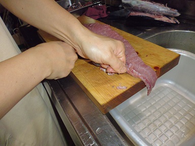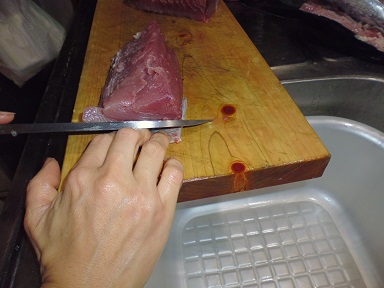メバチマグロの刺身 魚貝 2017年08月02日 メバチマグロの刺身 味の評価 ★★★★☆ 5枚におろしたメバチマグロ お刺身にします。 皮をひいてきます さくさくひいて ひたすら皮引き さくがいっぱい そこから刺身を大量にきりました 赤身からハラモ(トロ)から色々盛り合わせ。 で、メバチの味はびっくり。 キハダを食べた時は、今まで食べたマグロで一番美味いと感じた。 やっぱ、釣りたて、冷凍しない生は美味かった。 でも、そのキハダをはるかに上回る美味さ。 いままで食べたマグロで一番美味い!! 臭みもなく甘みすら感じる。脂も上品に乗ってて口の中でとろける美味さ。 驚きです。 これだと、マグロではさらに美味いと言われる、クロマグロ、ミナミマグロの釣りたてって相当美味いんじゃないの??? 誰か釣ってくれっ! その他の食べ方 [0回]PR