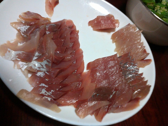 ワカシ、イナダの刺身 魚貝 2016年10月09日 ワカシ、イナダの刺身 味の評価 ★★★★☆ 我が家はブリ系の魚が大好物。 今年初のブリ系のお刺身なので大喜び。 とりあえず刺身にする。 そして食うっ! 写真を撮り忘れてる事に食べ終わってから気づき慌てて写真をパチリ。 大量だったので残ってるけど明らかに食い残し画像。 ごめんなさい。 その他の食べ方 [0回]PR