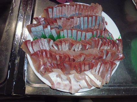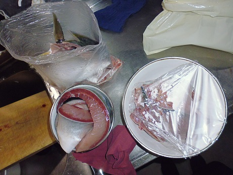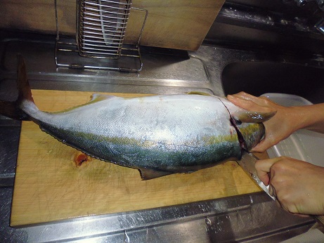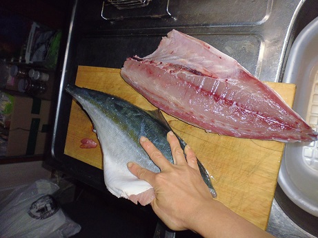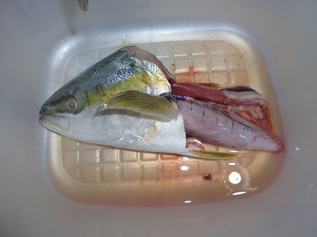 ワラサの刺身 魚貝 2017年06月21日 ワラサの刺身 味の評価 ★★★★☆ 今季初のワラサ。 早速お刺身で頂きました。 頭と内臓をとって 綺麗にして後日煮付けにします。 三枚におろして お刺身に。 丸々一匹分。 家族7人で食べ放題。 一番下の白い所はハラモ。 お味は夏が来たねーって感じで最高です。 ハラモは脂がのってトロトロ。 たまらんです。 我が家はブリ系の魚が好き。 ワラサも1匹では1食で食べてしまいました。 残りのワラサもさくにして 袋に詰めて冷凍。 アラや頭も冷凍して後日、煮付け、塩焼きなどにします。 その他の魚はこちら [0回]PR
