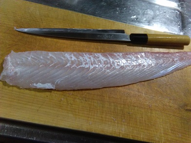 初めてのデカいヒラメ 食べたら激ウマでした 魚貝 2018年04月28日 先日釣れたヒラメはサイズを測ったらなんと62cm。重さは測ってないのでわかりません。 ちなみにヒラメは何度か食べたことがあるのですが、そんなに旨いと思った事はありません。 釣れても30~40cmぐらいだったし、養殖物の50cmぐらいのをもらった事ありますが、お刺身にして美味しいは美味しいのですが、みんなはメチャクチャ美味いと言っていますが、そこまで美味しいとは思いませんでした。 ヒラメなんかよりよっぽど美味い刺身はいくらでもあるじゃん。てな物でした。 今回釣ったヒラメはサイズも大きいせいか身の厚さもかなりありました。 さて5枚おろしにしましょう。 まずはうろこをおとし、頭を落とします。 はらを開いて内臓を出します。 デカい卵を抱いていました。 胃袋とキモは後日煮物にでもするべくきれいにして冷凍します。 卵はせっかくなのでからすみでも作ります。 表側からおろしていきます。 片面きれいにおろしました。 反対側も同じようにおろしていきます。 きれいにおろせました。 最後に皮をひいて サクの出来上がり。 サクが4本出来たので、2本は普通にお刺身に、残りの2本は漬けにしました。 漬けたれの作り方はこちらを参考にしてください。 お刺身はそぎ切りで薄造り。下の方にあるのはエンガワです。 そして漬けです。 デカいヒラメだったので一匹でも大量のお刺身になりました。 さぁてお味ですが、あれ??うめー! めちゃ美味いんですけど・・・・。 漬けも相当美味い!! あれ?ヒラメってこんなに美味しい魚だったの?? いままで美味しいヒラメを食った事が無かったんですね。 結構居酒屋とかでも食べたんだけどそれほど美味しいものだとは思わなかった。 しかし、今回ヒラメの見方が変わりました。 物凄い旨い。 せっかくなので茶わんのご飯の上にのせて醤油をたらして、ワサビを添えて食ったら、更に美味い!! 次はご飯に漬けをのせて食べたら、こちらもメチャメチャ美味い!! お腹がいっぱいです。 そんな食べ方してたら家族7人で1日で食べちゃいました。 【送料無料】天然ヒラメ 平目 日本海産 2.5〜2.9キロ物 [0回]PR