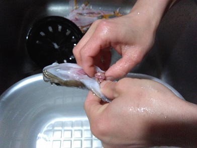 初めて釣ったナイスサイズなカレイ カレイの空揚げ 魚貝 2018年04月07日 今回初めて釣ったカレイ。 伊豆界隈で釣りをしているのですが、ヒラメは釣れるのですが、カレイは小さいのしか釣ったことしかありませんでした。 今回は珍しく30cmぐらいのが釣れました。 空揚げが旨いとの事なので、空揚げにチャレンジ。 カレイを5枚におろします。 はらに包丁を入れて 内臓を出します。 頭をおとして ひれに沿って包丁を入れて 身の真ん中からも包丁を入れて身を切り出します。 片面2枚切り出しました。 反対面も同様に切り出します。 5枚おろしの完成です。 この身の部分をぶつ切りにして空揚げにします。 そしてここから写真を撮り忘れました。 ごめんなさい。 と言うわけで無事空揚げが完成したのですが、食べてみてビックリ!! カレイってこんなに美味しいの? 今までお店とかお弁当とかに入ってたの食べた事あるけど、なんだか別物ですね。 鮮度のせいなのかどうか知りませんがめっちゃうまかったです。 東京湾とかでカレイを専門に釣る人がいるとか聞いたことがあるけど、なるほど、専門で釣りたくなりますね、これ! また釣れるといいなー、カレイ。 カレイ ナメタガレイ ババガレイ 1枚-400g前後 お花見 母の日 父の日 お中元 お歳暮 ギフト [0回]PR