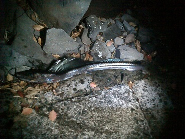 捨てられたミズウオをもらってお刺身でたべてみた 魚貝 2018年05月14日 先日磯物を採りに行った際に変わった魚を頂いた。 先日の記事はこちらです。 西伊豆方面に磯物を拾いに行ってきた 貝編 西伊豆方面に磯物を拾いに行ってきた 海藻編 その際に変な魚を採った方がいて、捨てるように置いてあった。 「これ捨てるんですか?捨てるんだったらください。」 と交渉した所、快く譲っていただきました。 太刀魚みたいな魚・・・。 悪そうな顔つき。 ネットで調べて見るとどうやら深海魚でミズウオらしい。 しかも、ネットでも食った事のある人が少ないらしく記事が少ない。 調べていくと何人か食った人はいるみたいだが、いづれも美味しくないと・・・。 少ない記事のなかでも食べたことのある人の一人に、私の尊敬するブログのハンマープライスがあった。 この人はなんでも食べてるなー、と感心してしまう。 まぁどうであれ毒は無いようなので食べてみることにしました。 身はゆるゆるで手でさばけるほど。 骨も柔らかく軟骨みたい。 手でさばいていくと胃袋に異物が入ってる感触がある。 胃袋を開けてみると中にはティーバックの袋が入っていた。 なんだか何でも食べてしまう魚らしい。 そして写真はありませんがお刺身にしてみました。 食べてみると、くにゅくにゅしてる・・・・。 味はない。なんだかビチャビチャ。 さばいてる時からそうでしたが、何をしても水が身から湧いてきて常にまな板はびしょびしょ。 さばき終わって刺身にしてもそれは変わらず、水っぽい。 これがミズウオと呼ばれる由縁かな。 はっきり言って美味しくない。 たとえるならナタデココみたい。 醤油をつけても自身の水分で流れてしまい味がしない。 こりゃぁ食い物ではないな。 我が家では食べれなない魚は、毒のある物ぐらいですが初めて全く食えないお魚に出会いました。 こんな魚もいるのね。 まだまだ色んな魚がいるんだねぇ。 [0回]PR