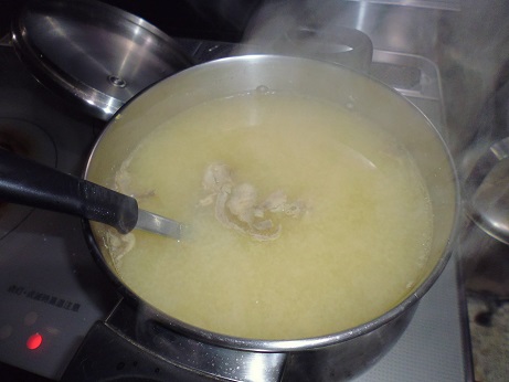 瀬戸内の魚 アラと内臓の味噌汁 魚貝 2017年03月04日 アラと内臓の味噌汁 味の評価 ★★★☆☆ 瀬戸内から届いた魚をさばいた際に出たアラと内臓。 ヒラとのどくろ、セトダイ。 内臓はキモと胃袋、浮袋、心臓をきれいに洗い食べやすい大きさに切る。 鍋で下茹でして 完成。 普通に味噌汁を作った。 とってもシンプルですがこれが美味い。 文句なしに出汁がでてる。 内臓はどれがどの魚のものか全くわからないが、歯ごたえあったり、濃厚な味だったり、ゼラチンみたいになってとろける場所だったり。なかなか楽しく美味い。 アラについてる身も食べてみると、どの魚も美味い。 中でも特にうまかったのはヒラ。 セトダイは無難な味。普通に美味い。 のどくろは脂がのって柔らかくて美味い。 ヒラは、ハラモの部分があったのだが、太めの骨が数本ある。 身がゆるいので手で抜くとスルスル抜ける。 残った身を食べると、もうトロトロ。 口でとろける。 刺身は小骨が邪魔で微妙だったが味噌汁はヒラがGOOD。 いやぁ美味しかった。 ごちそうさまでした。 その他の食べ方 [0回]PR