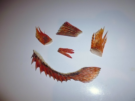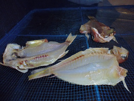 甘鯛の干物 魚貝 2017年01月14日 甘鯛 沢山釣れた甘鯛とタマガシラ(下の写真の右から2匹目)を干物にしました。 開いて塩水につけて 干しあがり。 冷凍しといてそのうち食べます。 干物を干したついでにひれ酒用のひれを干した。 甘鯛のヒレ達。 そのうち美味しくひれ酒にします。 その他の食べ方 [0回]PR