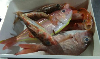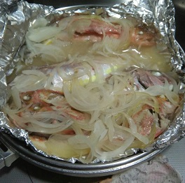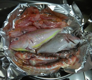 真鯛とイトヨリ、その他小魚の酒蒸し 魚貝 2018年12月25日 この前の釣りはひどい貧釣に泣かされました。 小物たちが多数いましたので小物達と以前冷凍してあったイトヨリで酒蒸しにしました。 小物はサクラダイとトラギス、小鯛です。 こいつらを酒蒸しにします。 鍋に並べて玉ねぎのせて、塩、コショウ、お酒を回しかけて火にかけます。 出来上がりです。 まぁ酒蒸しは何回かこのブログでも紹介していますが白身の魚はたいてい美味しく出来ますね。 そしていつも美味しいのがです。サクラダイです。 この魚、本当に大きくなれる魚だったら人気の魚になるのになぁと思うほど味は良い魚です。 しかし大きくても20cmになるかならないかのお魚なので、まず持って帰る釣り人はいないですね。 美味しいのになぁ。 本日も美味しくいただきました。 [0回]PR