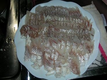 真鯛の刺身と湯引き 魚貝 2017年11月07日 真鯛の刺身と湯引き 味の評価 ★★★☆☆ 珍しく真鯛が沢山釣れました。 今回はお刺身と湯引きに挑戦。 みんな三枚におろして まずは普通にお刺身。 真鯛はお刺身にすると美しいですね。 味は脂がのってないせいかそんなにうまくはないような・・・。 ちと期待外れです。でも、普通に美味しいんですけどね、贅沢な話です。 更に湯引きはこちら。 これも美しく出来上がりました。 皮面に熱湯をかけて冷水でしめて出来上がり。 皮と身の間の旨味も合わさってうまいはず・・・。 ですが、やはり脂の乗りがいまいちなせいか期待ほどではない。 期待しすぎか?? まぁ十分美味しいんですけどねこれも。 最近舌が肥えて来ちゃったかな? その他の食べ方 [0回]PR