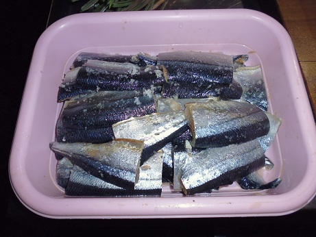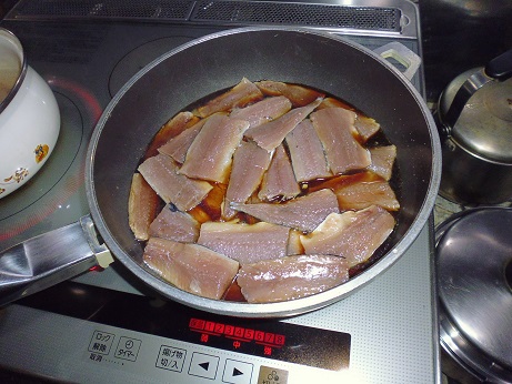 秋刀魚の蒲焼丼 魚貝 2017年02月22日 秋刀魚の蒲焼丼 味の評価 ★★★☆☆ 以前買って来たサンマを冷凍して置いた。 前、アナゴを釣った時にかば焼きにしたらめっちゃ美味しかったんで、サンマもさぞかし美味かろうと思い蒲焼を作る事にしました。 三枚におろして塩を振って約10分おく。 その後水洗いをして塩を洗い、 フライパンに醤油、みりん、酒、砂糖を入れ煮立てる。 煮立ったら 秋刀魚を入れ アルミ箔で落し蓋をして蓋をして火が通るまで煮る。 出来上がり。 どんぶりに盛り付けてタレをかけ、最後にのりを散らす。 完成です。 秋刀魚の蒲焼丼のお味は。 秋刀魚は相変わらず美味い。 脂がのって秋刀魚独特の旨味があって美味しい。 しかし、かば焼きのつもりで食べると、アナゴと比べるとアナゴの蒲焼のが美味い。 アナゴの濃厚なうまみとたれがマッチするみたいで、サンマにはそれがない。 でも、普通秋刀魚の蒲焼と言うと衣がついてるんですよね。 理由はわからないが、衣をつけた方が美味いのかもしれない。 今度試してみよう。 その他の食べ方 [0回]PR