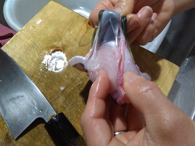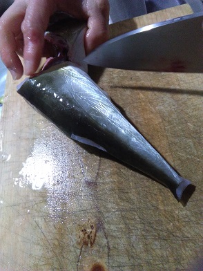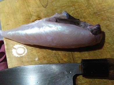 絶品シロサバフグの刺身 毒サバフグに注意 魚貝 2018年04月26日 網引きでサバフグが3匹かかっていたが、捨てると言うのでもらってきた。 キタマクラも数匹いたが流石に捨ててきた。 キタマクラはその名の通り、毒性が強く食べると北枕になってしまう(死んでしまう)らしい。 さてこのサバフグですが以前にもブログで書いていますが、非常にグレーな食材です。 フグでも全く無毒なフグであるシロサバフグは昔から食べられてきました。 よくスーパーなんかでもフグの一夜干し売ってますが、それはシロサバフグと思われます。 伊豆の防波堤でもシロサバフグが釣れてしまうことがあるのですが、捨てようとすると地元のお年寄りなんかは捨てるならくれっ!と言われたことがあります。 どうやって食べるのかと聞くと刺身にしたり一夜干しにしたりすると言ってました。 と言う訳でシロサバフグは無毒で食えるんです。 しかし、まず一つ目の問題としてフグは素人がさばいてはいけないんです。 トラフグだろうとサバフグだろうと。 フグの調理免許が必要なのですが、海沿いのサバフグを食べてるお年寄りがそんな物を持ってるとは思えません。 シロサバフグはどこの部位も無毒なので大丈夫なのですが自己責任で食べていると言った所でしょうか。 そして本当に気を付けないといけないグレーな食材の理由にシロサバフグに似た毒サバフグと言うものが存在すると言う事。 こちらは名前の通り毒をもっているので非常に危険です。 そもそも毒サバフグは南の方(沖縄とか?)にいたけど伊豆あたりには昔はいなかったそうです。 温暖化の影響でしょうか、南伊豆あたりで発見されたとか・・・・・。 そんな噂もあるので私の釣りする駿河湾にもいるかもしれません。 素人には見分けが難しいとの事なのでサバフグは食べないのが無難でしょう。 しかし、一番の問題はこのグレーな食材、美味いんです。しかも相当に!! どうしても食いたいほどに。 なので、ちゃんと見分けたうえで自己責任で食べましょう。 尻尾の形が見分けのポイントの一つ。 そして背中の頭の上の小さなとげが、毒サバフグは背びれまで達してるとの事。 私はそれでもシロサバフグを食べてるのですが、それは見分けに自信があるからです。 とはいえ、実は毒サバフグの実物を私は見たことがありません。 でも、ネットで調べる限り、これは絶対見分け着くだろうと思います。 例えばソウダガツオには丸ソウダと平ソウダがいますが、素人には見分けがつきません。 釣り人でも見分け出来ない人が結構います。 でも、ちゃんとわかればパッと見でもわかります。 私の場合は釣って、水面から上げる前に魚体を見て丸ソウダか平ソウダか見分けがつきます。 なので毒サバフグとシロサバフグの違いはどう見てもわかるだろって感じです。 でも最近はハイブリッドな魚もいて、見た目は丸ソウダ、中身は平ソウダなんてのもいます。 見た目はシロサバフグ、中身は毒サバフグなんてのが出てきたら一環の終わりですね。 このブログが更新されなくなったら毒サバフグにやられたと思ってください。 前置きが長くなりましたが、危険を伴うかもしれないので食べない方がいいのと、食べる時は自己責任でお願いします。 さて、このシロサバフグですがお刺身ははっきり言って激ウマです。 これ食ってれば別に普通のフグを高い金払って食べに行かなくてもいいかなって思えます。 まずヒレと尻尾を切り落とします。 これは後で干してひれ酒の材料とします。 頭を落として内臓を出します。 そして皮を剥いでいきます。 皮はカワハギのように手できれいに向けます。 スルスル剥けてきます。 はい、真っ裸になりました。 三枚におろします。 そして内臓部分の黒っぽい皮も手で剥ぎます。 三匹分です。 鶏のささ身みたいに見えます。 これをお刺身にして出来上がり。 写真のお刺身は薄造りにしたものですが、今回は三匹いるので切り方を変えてみました。 一匹は薄造り、一匹は厚めに切ってみました。 もう一匹はぶつ切りにしました。 切り方で味が変わるかな? ここからは写真を撮り忘れて食べてしまいましたが、はっきり言って激ウマです。 切り方は歯ごたえのある魚なので薄造りが定番です。 切り方で美味しかった順に、厚切り、薄切り、ぶつ切りの順番です。 薄造りと厚切りはそぎ切りするので舌に触る面積が大きいのかねっとりとした口触りと甘みを感じます。 ぶつ切りも歯ごたえもよく美味しいのですが旨味が足りない。 どちらの良い所も併せ持ってる厚切りが一番美味しかったです。 ちなみにヒレとあらと、皮ですが干しました。 皮は干してサビキづくりの材料にします。 ヒレ&あらはひれ酒、骨酒にします。 今日も美味しくいただきました。 【送料無料】まとめ買いでお得!ふぐみがき(しろさばふぐ)【1kg】山口県 山口 下関 ふぐ みがき 身欠き [0回]PR